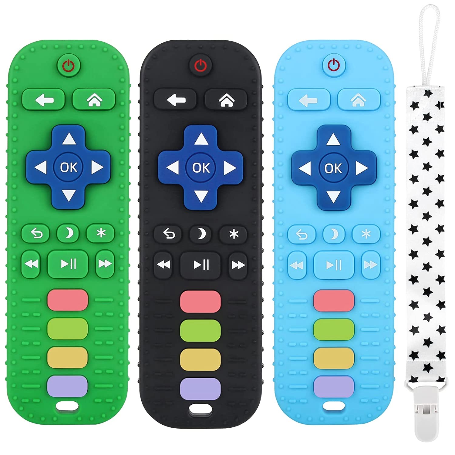 Excellent quality- great teetherMy son LOVES to steal our TV remote. The 2 colored remotes are great fun and great teethers- the black remote looks just like a real remote- he thinks he’s stealing a good one and loves to chew on it. I was pleasantly surprised that it came with 3 clips so it doesn’t drop while we’re out. Great value.
